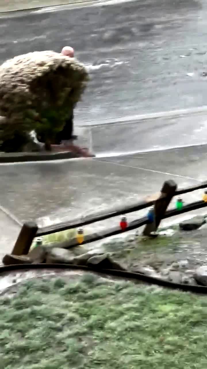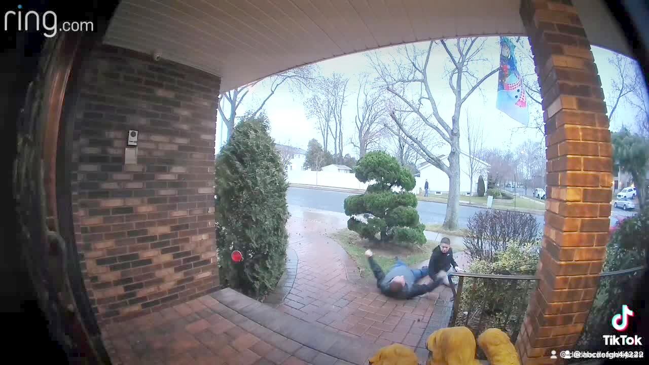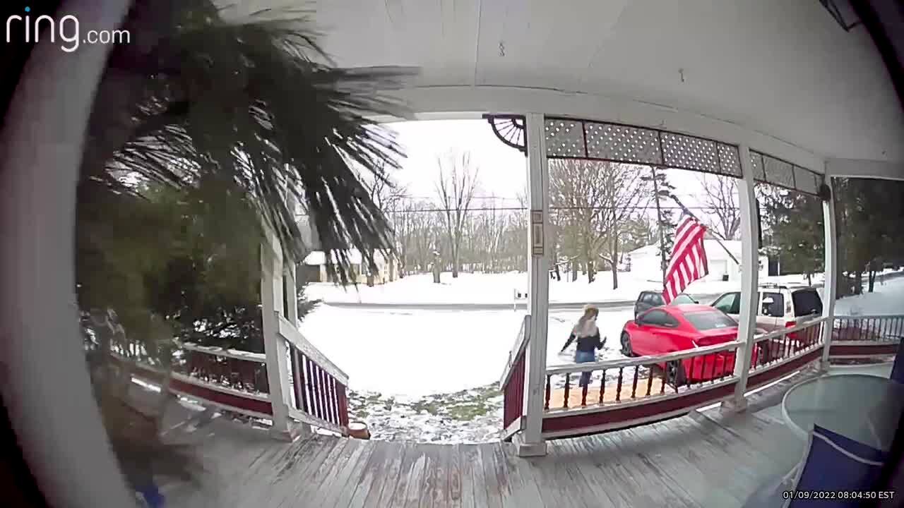 A woman slips and fall, twice, as she tries to get to the mailbox. Security footage.