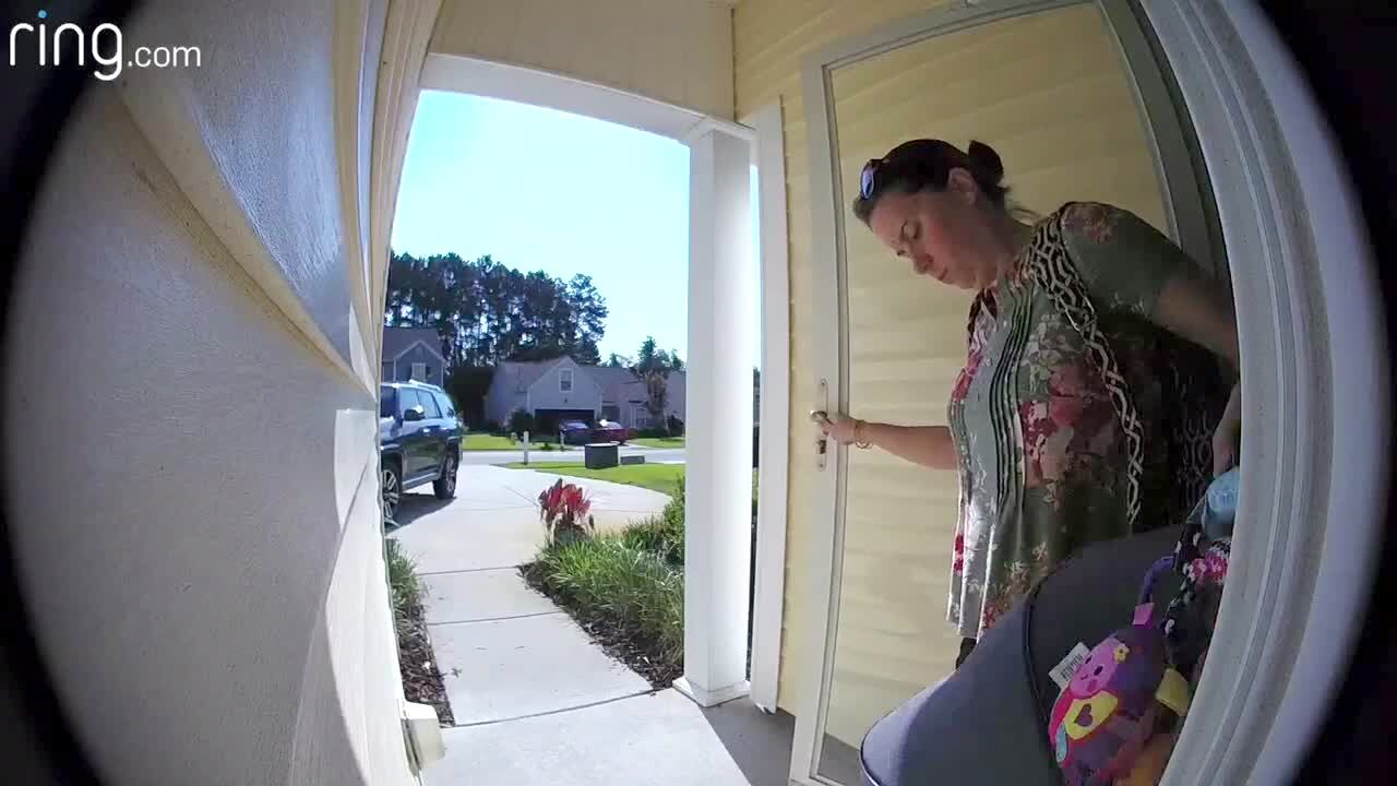 A teen boy runs across a yard and jumps on a stoop porch and slips on black ice and falls flat on his back and slides off the stoop.