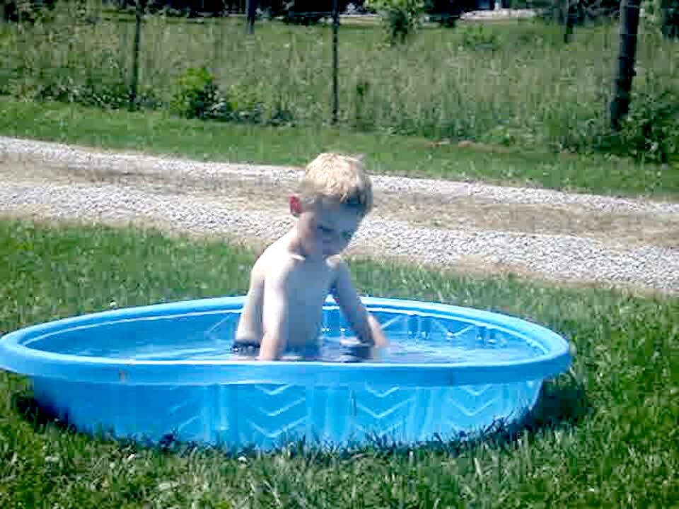Group of kids and teens get ready to jump into a pool. Boy slips and bounces off of diving board