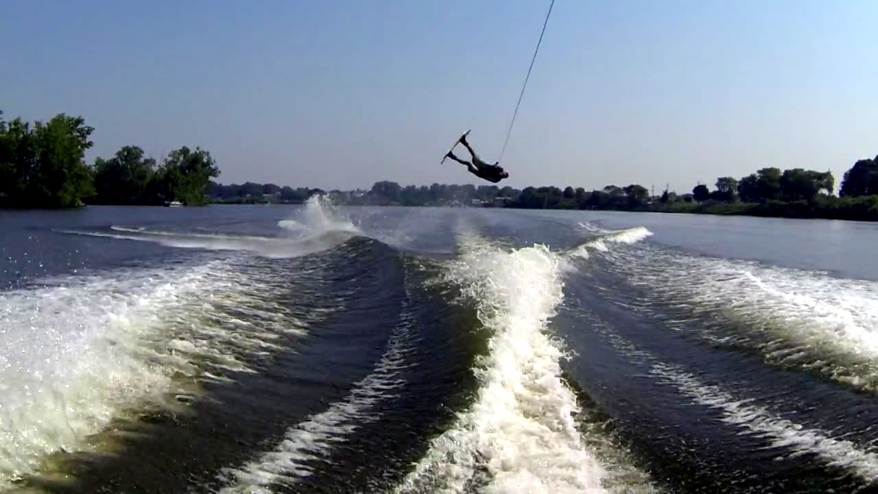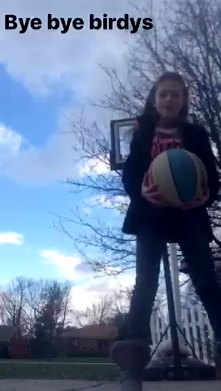 A young girl leans in to blow out her birthday candles and falls out of her seat outdoors.