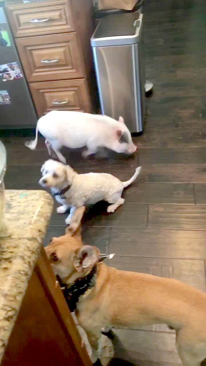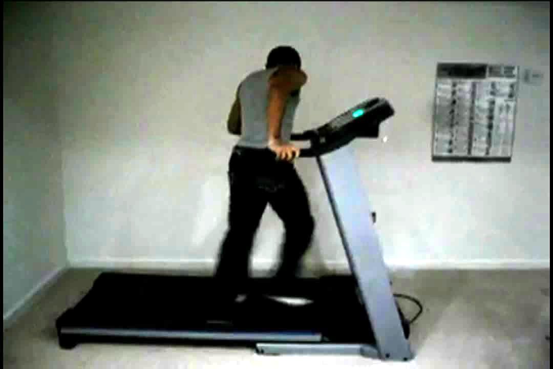 Teen boy jumps on pogo stick in garage. He tries to jump up onto a chair, but falls down hard. Bonehead.