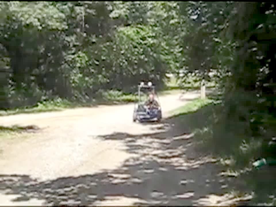 Teen boy drives golf cart over mound on golf course, crashes and falls out of cart. Bonehead.