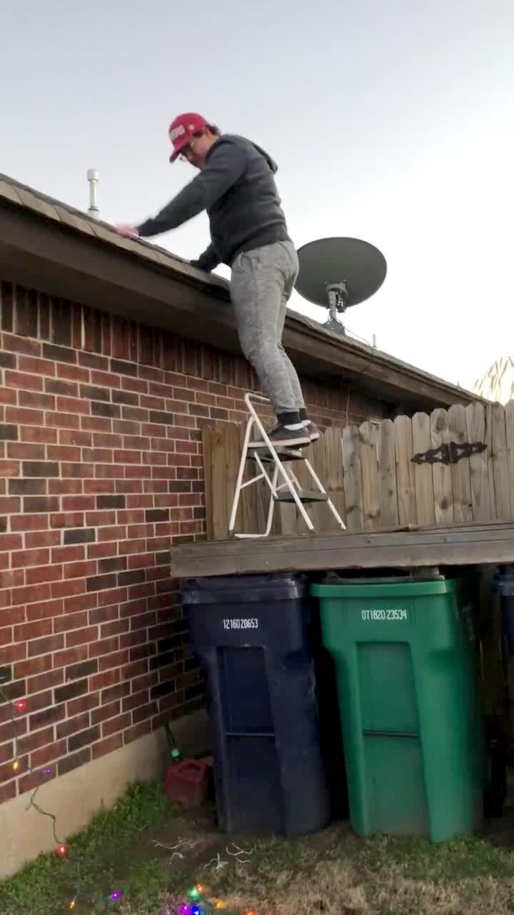 A young boy uses a confetti popper, but aims it in the wrong direction and it hits his groin.