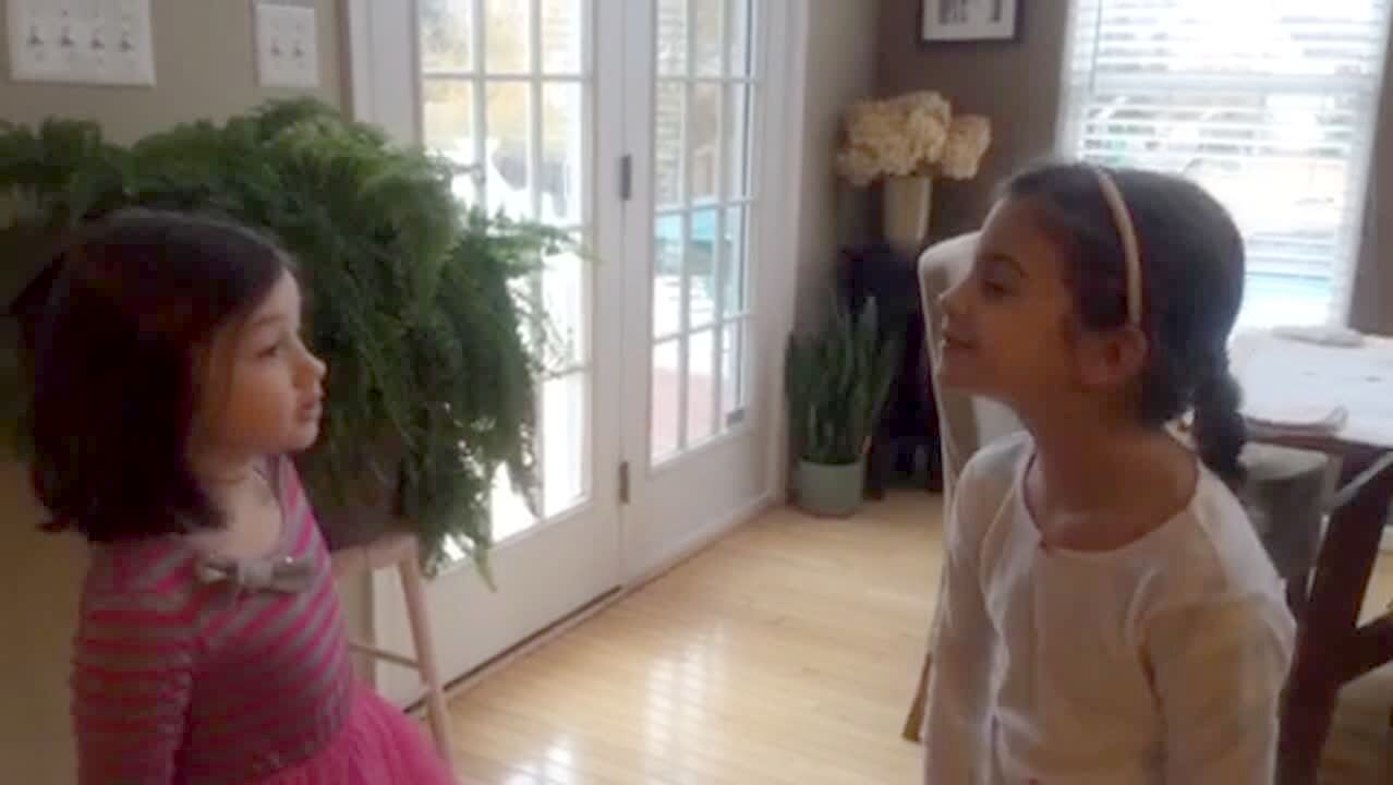 A tot girl gets surprised and scared by her dad who is dressed up like a Mime indoors. He mimes a response and pretends to run away. AA: Halloween