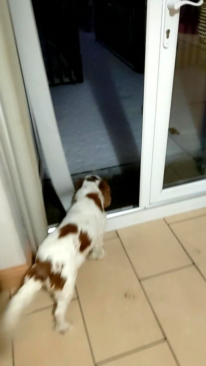 Young boy opens a door and sees the face of a toy dinosaur. He screams. Practical joke, scare.