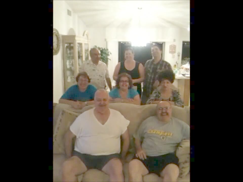 A family is posing for a photo and man taking photo says "1,2,3 everyone say 'Michelle's pregnant.'" It takes the family a long time to figure it out.