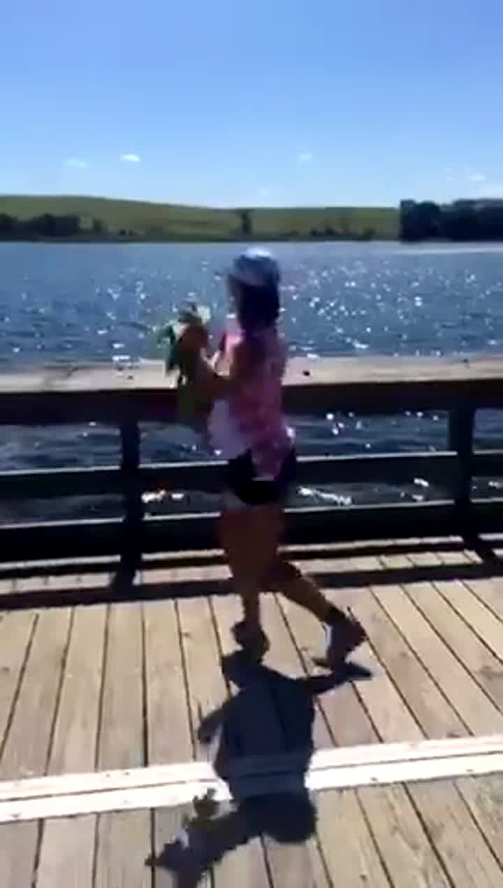 A woman dances but trips and wipes out. Social media video. Music rights not cleared.