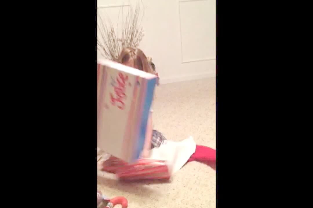 A young girl opens a Christmas present. It's a diary and she says "It's a diarrhea!"