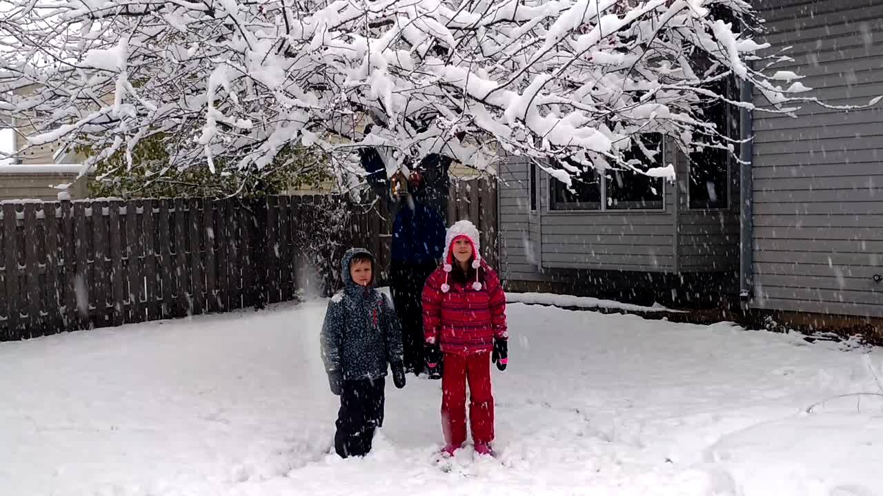 "Husky Howler" - A young boy and girl play guitar and drums. A Husky dog lays in the stairway and howls along with their music.