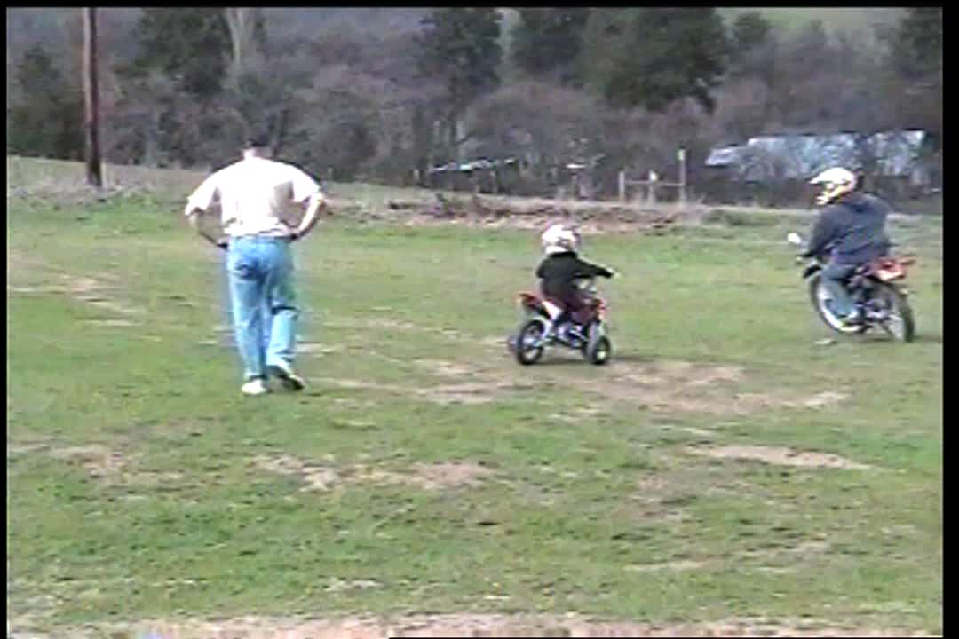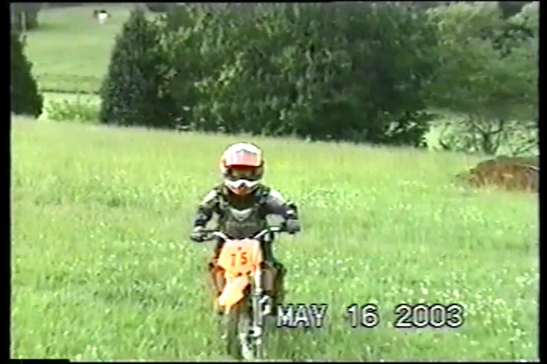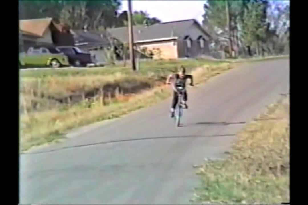 "Bike Yikes" Young boy hits crotch on dirt bike. He falls off into grass and plays dead.