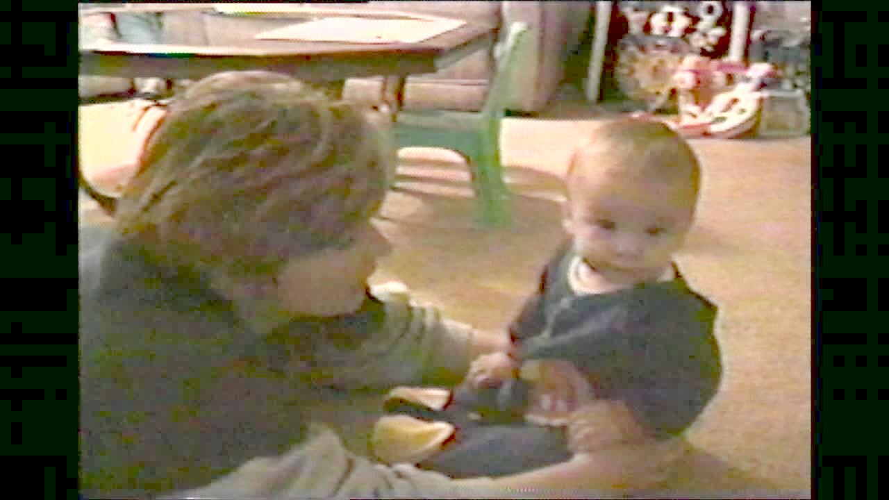 A tot boy talks to his mom with Nutella all over his face and explains that he loves chocolate. The woman follows her son up stairs and finds her younger tot son in a crib with chocolate all over his body and bed.