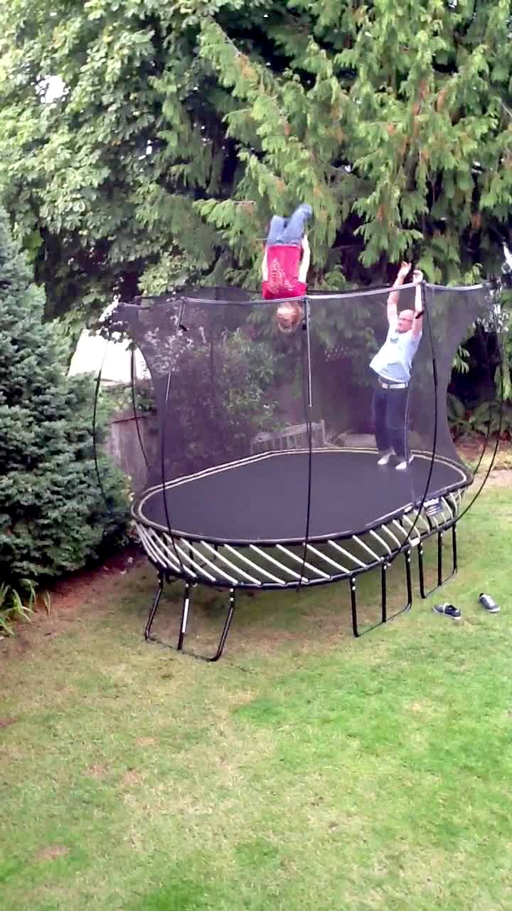 A man sleeps as his friends build a wall of cardboard moving boxes around him, then make sounds like someone is falling to scare him awake. Once he stands up, he leans on the wall of boxes and falls through to the other side. Practical joke.