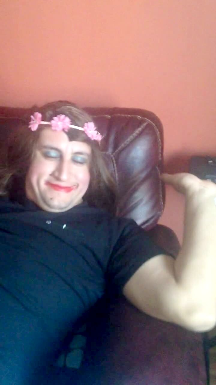 A girl presents her made up dad and says "Eat your heart out Alfonso" indoors. AA: Makeup your dad
