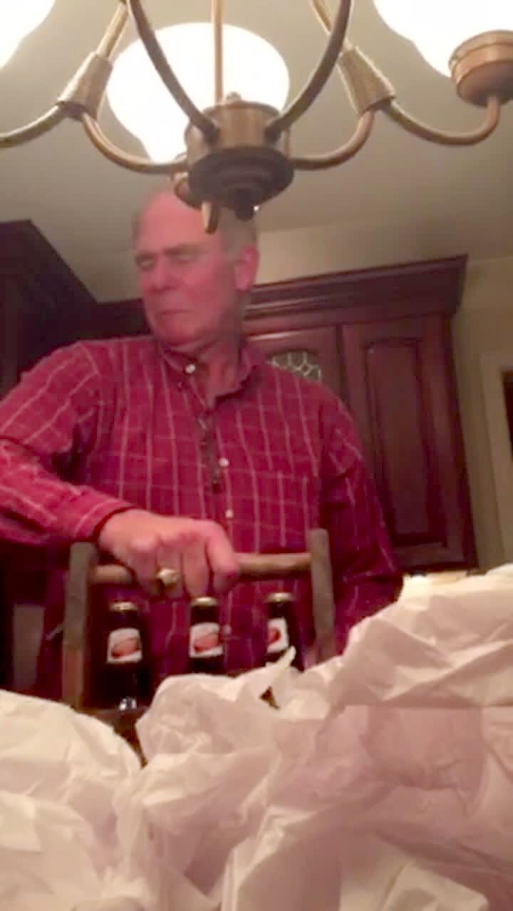 A girl is excited to give her dad a make-over. The video cuts to later and her dad wears make-up and feathers in his hair. AA: Makeup your dad.