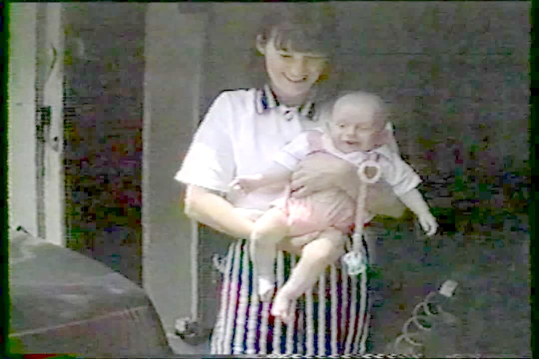 "Blinky Baby" Barking dog causes baby to flinch and blink repeatedly after each bark. make faces.
