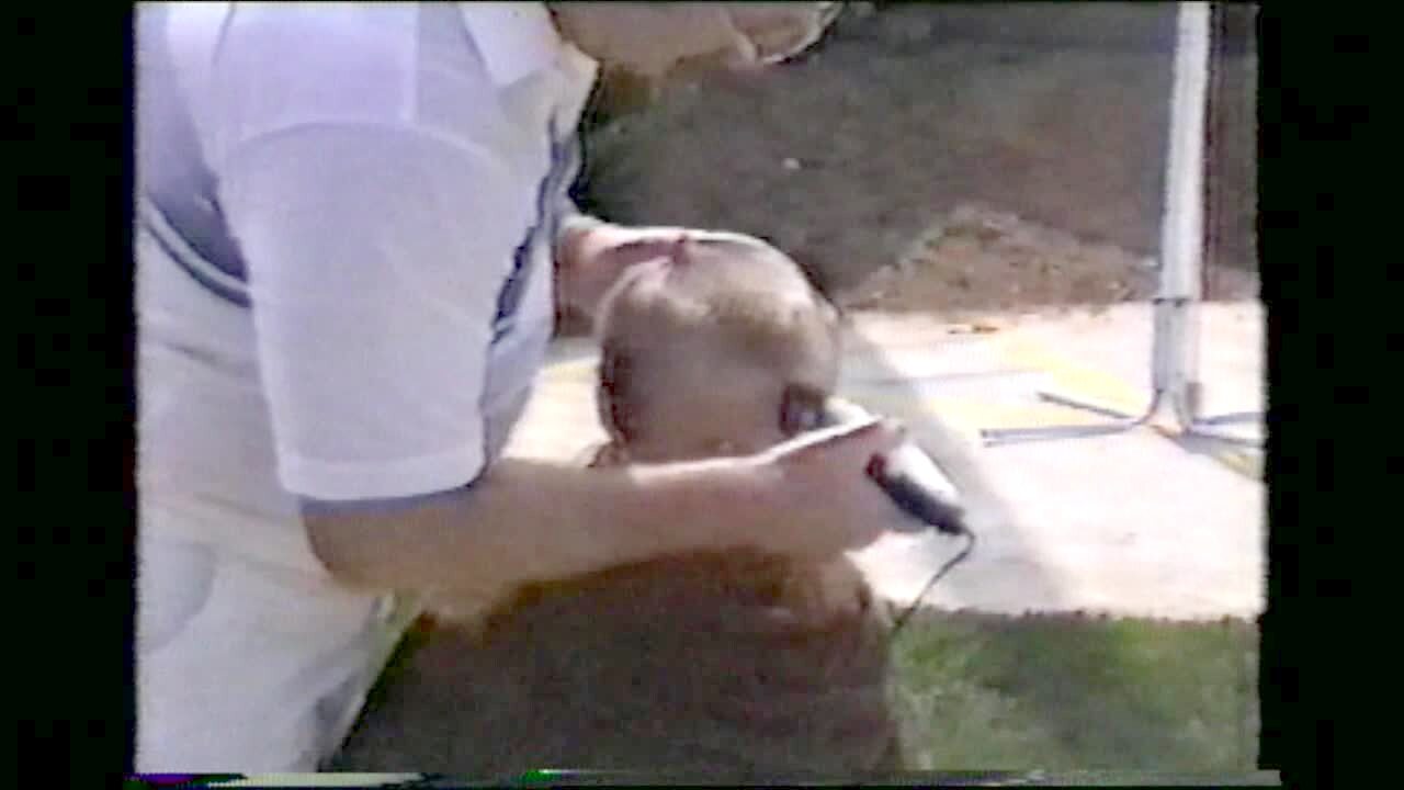 "Worlds Worst Haircut". Attachment to razor falls off and boy's hair is shaved off.