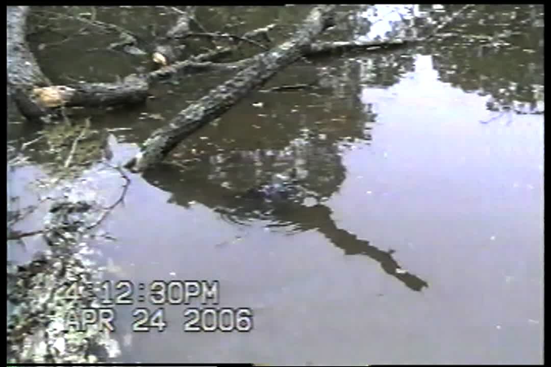 Catfish has a huge bullfrog in its mouth. Suddenly the frog gets away before it was eaten. Odd, animal escapes.
