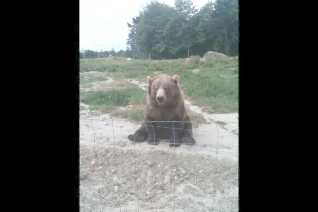 Bear wrecks camper's nice tent, then takes off with some food. "He's got the cookies and the donuts and everything". *tracking a bit off