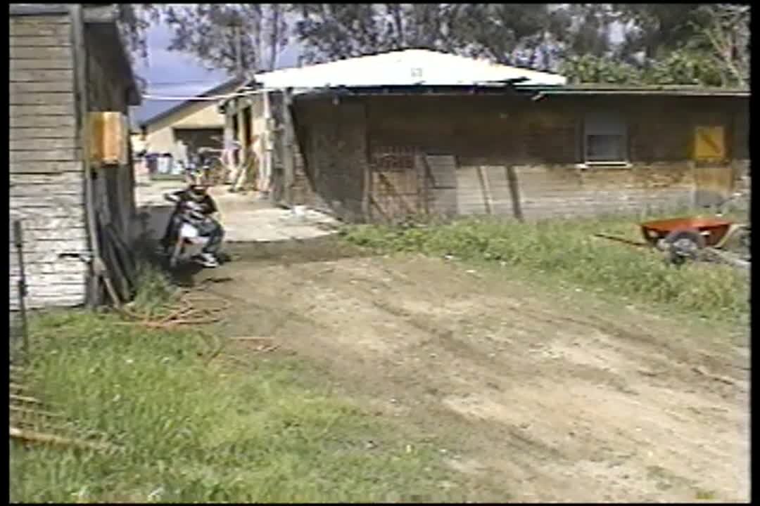Kid on motor bike crashes into wooden fence