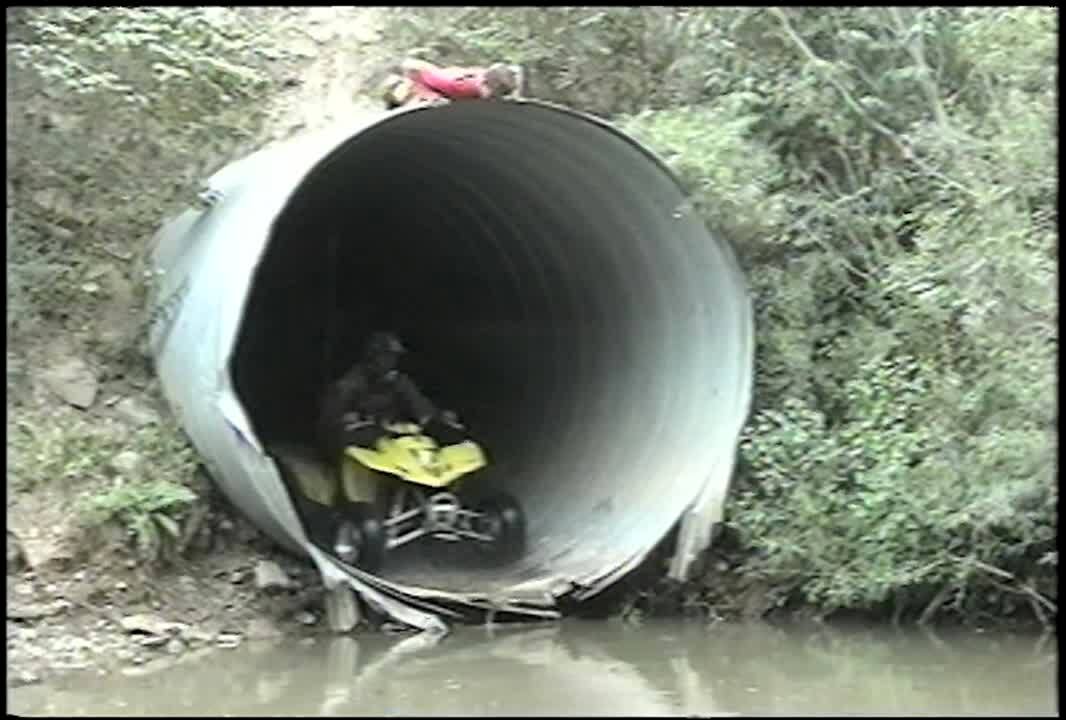 Teen boy goes on 4 wheeler goes too fast, flies over handle bars and lands in water.