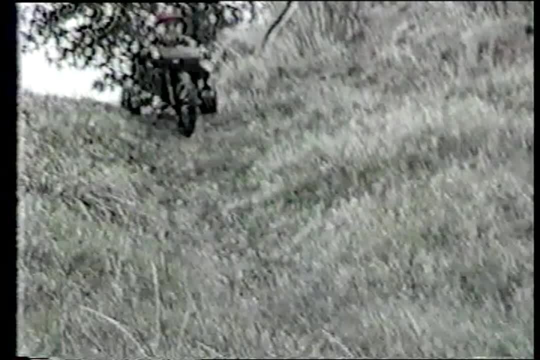 Teen boy tries to pop a wheelie on an ATV but he gets thrown over the handlebars when he hits the brake. 4 wheeler, motorbike. Good recovery.