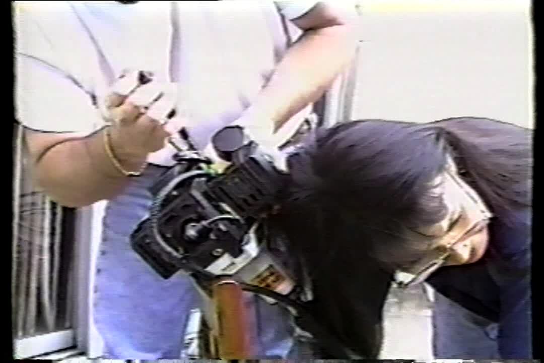 "Hairdo with a Chipmunk or Two" A man unties a woman's hair while she explains that a chipmunk climbed into her hair. The man untangles her hair and pulls the chipmunk out.