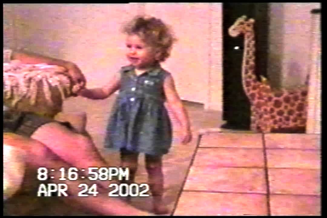 A tot girl runs through an obstacle course, and climbs up an obstacle. A woman tells her to say "I'm so strong", and she says "I'm so scared".
