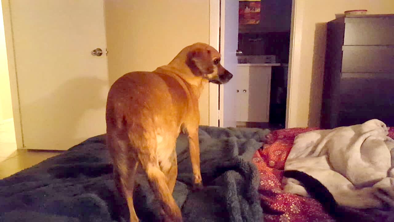 Two young girls sit in front of a camera. One girl plays with a stress ball that pops and spills on her. Her sister blames her for popping the stress ball and gloats about the punishment that will come while she cleans up the mess made by the stress ball.