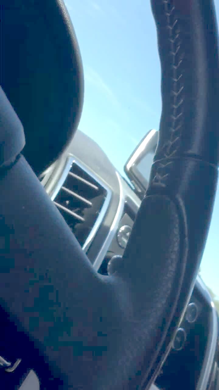 Three women react to two buffalo who stick their heads in a car window and stick out their tongues.