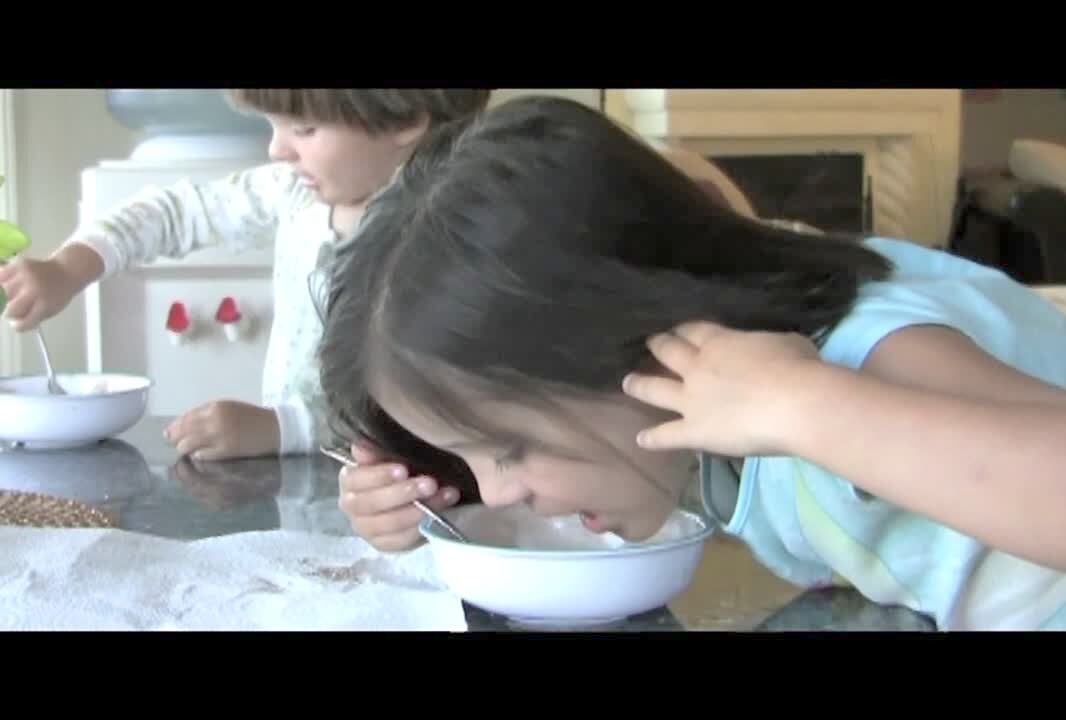 2 teen girls pretend to play guitars, another teen girl pretends to play the drums and keyboard. They lip sync to the song "Walking on Sunshine." The girl pretending to play drums slips & falls off her chair, knocking over the keyboard. Short tails.