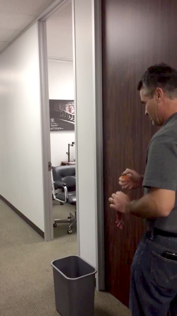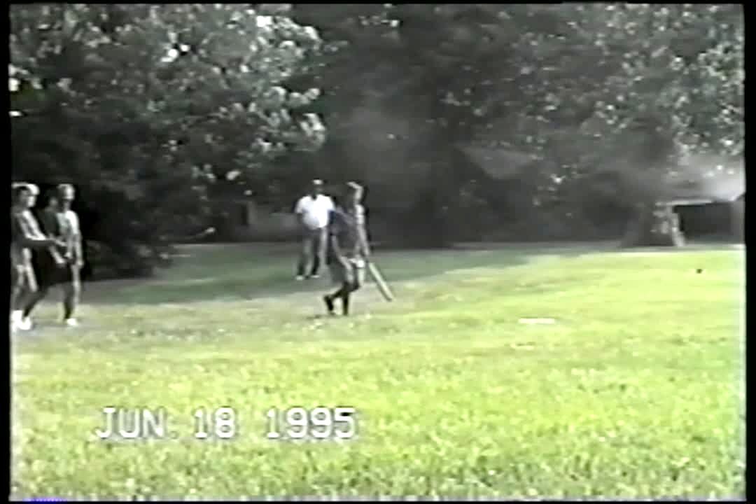 Man paints grapefruit to look like a softball, it explodes when hit (LOW AUDIO). date on screen.