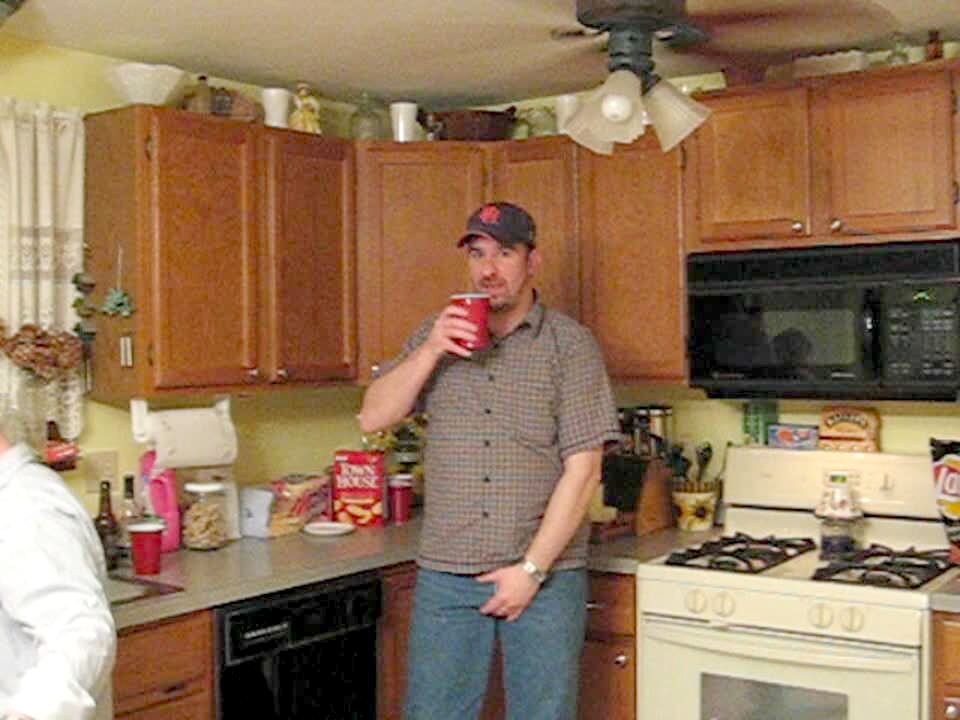 An adult man tries to twerk in front of the camera and proceeds to kick the camera and break things indoors.