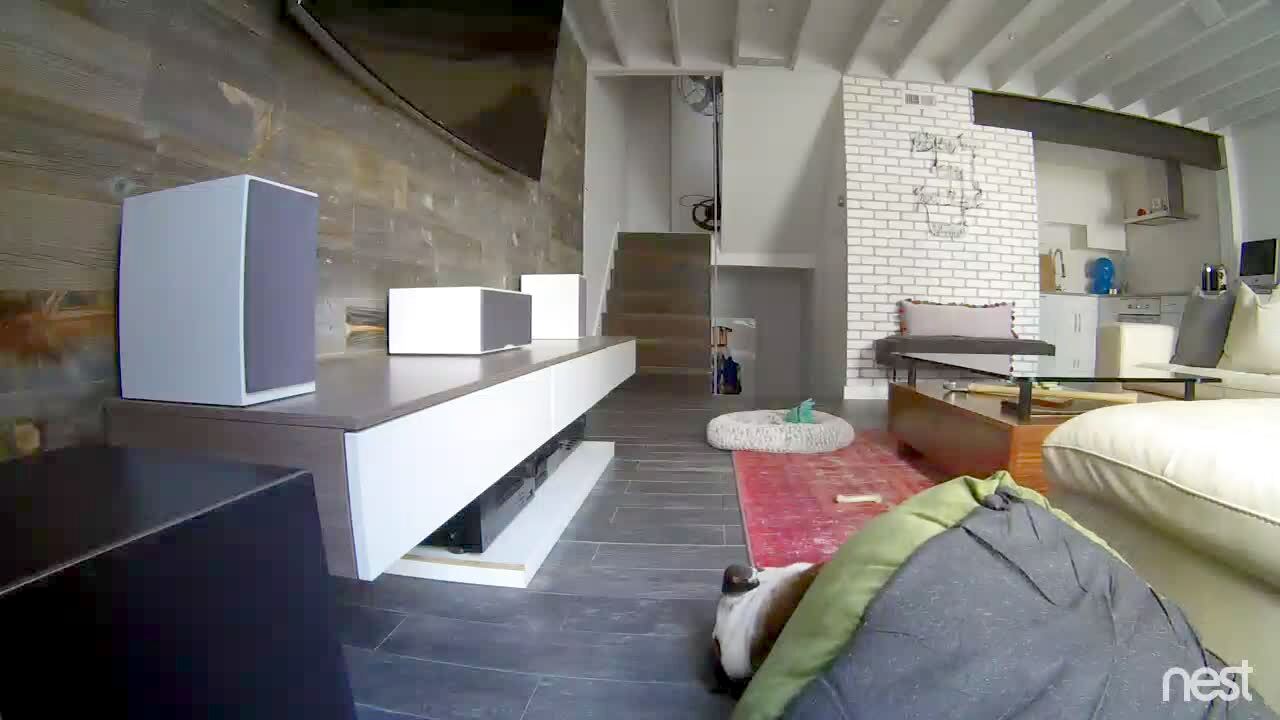 A cat flinches each time a man slaps his leg in a living room.