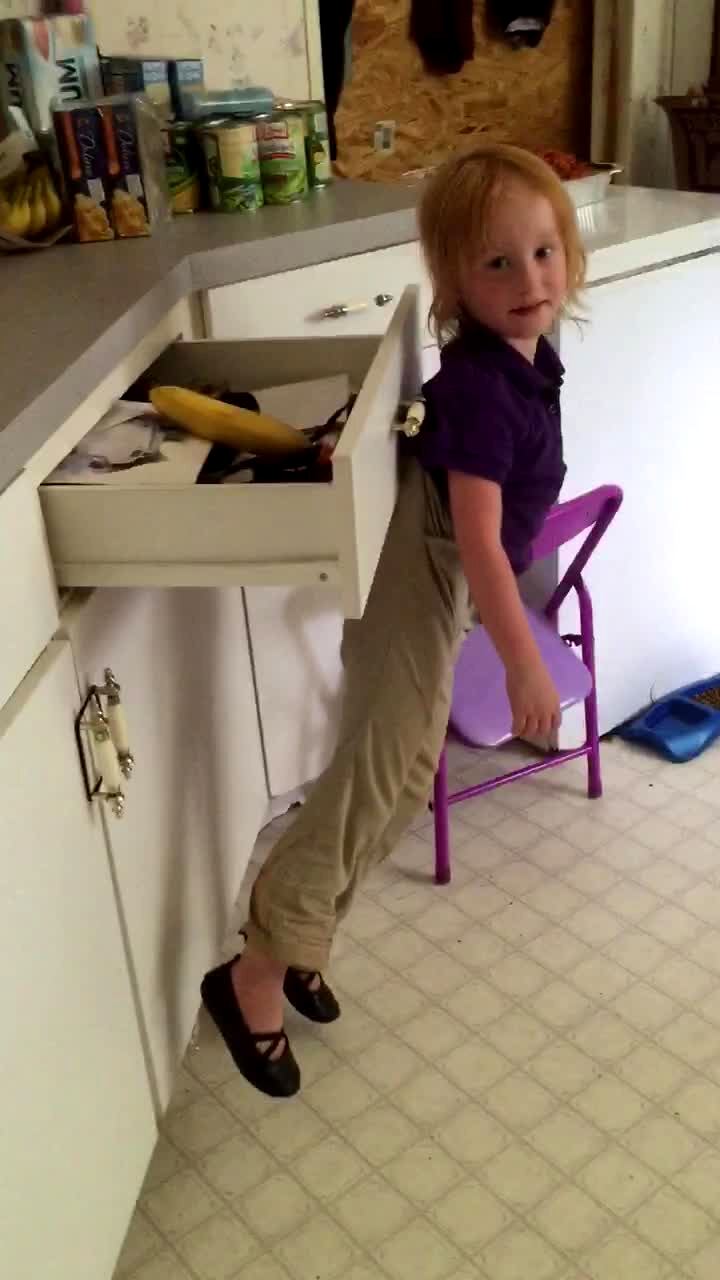 Twin tot girls sit in highchairs in the living room indoors and one of them cries because she wants the other one's food. The girl with the food holds out a piece for her sister, but when the girl reaches for it, she pulls it away and eats it herself. The girl who wanted the food gets mad and pushes her cup off the highchair.