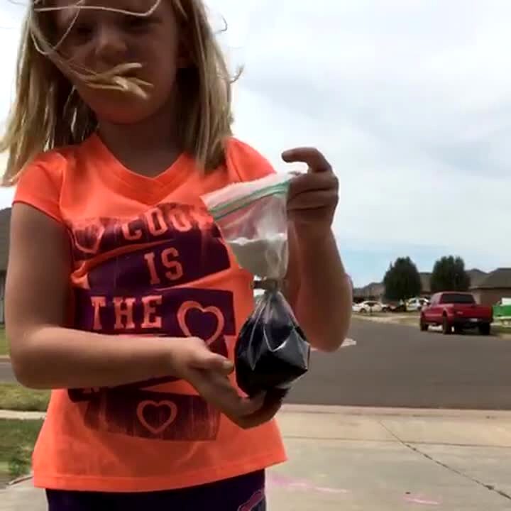 A woman and her daughter do a science experiment outdoors and it explodes on the young girl.