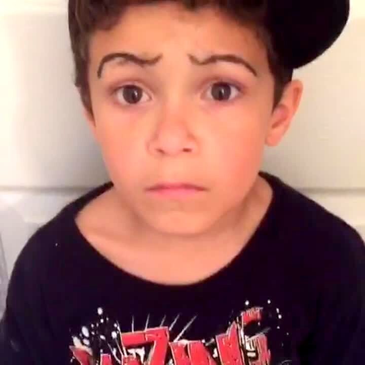 A woman scolds her son in the bathroom indoors after he shaved off his eyebrows. She drew new eyebrows on his face as punishment and the boy gets upset at how they look. SAME CLIP AS 733385 (USE CLIP 733368)