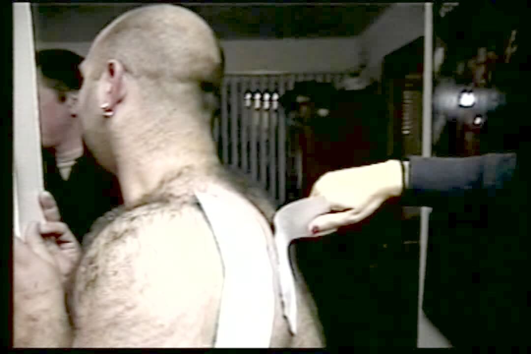 Man gets the back of his head waxed. He lets out a long scream. Bald.