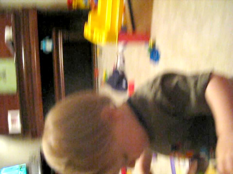 Tot boy is playing with his dad before bedtime. Boy starts coughing & suddenly vomits all over dad. Dad screams & boy laughs. Dad turns to camera & has brown puke all over him. Throw up. Gross.