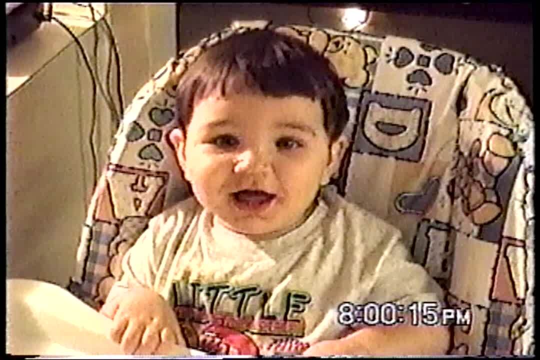 AA: Funny Laughs: Baby boy in high chair laughs funny; almost sounds like he's baa-ing