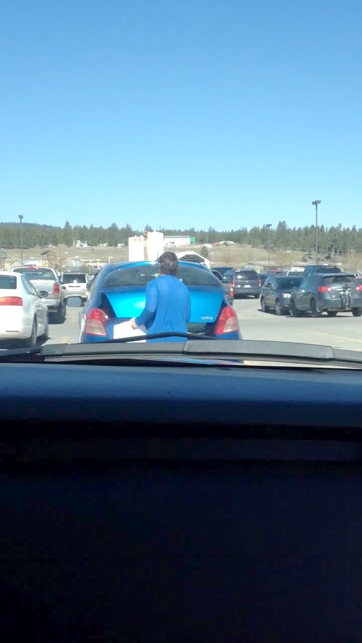 A cat walks on his front paws outdoors. Music plays over the video. Vine/Instagram.
