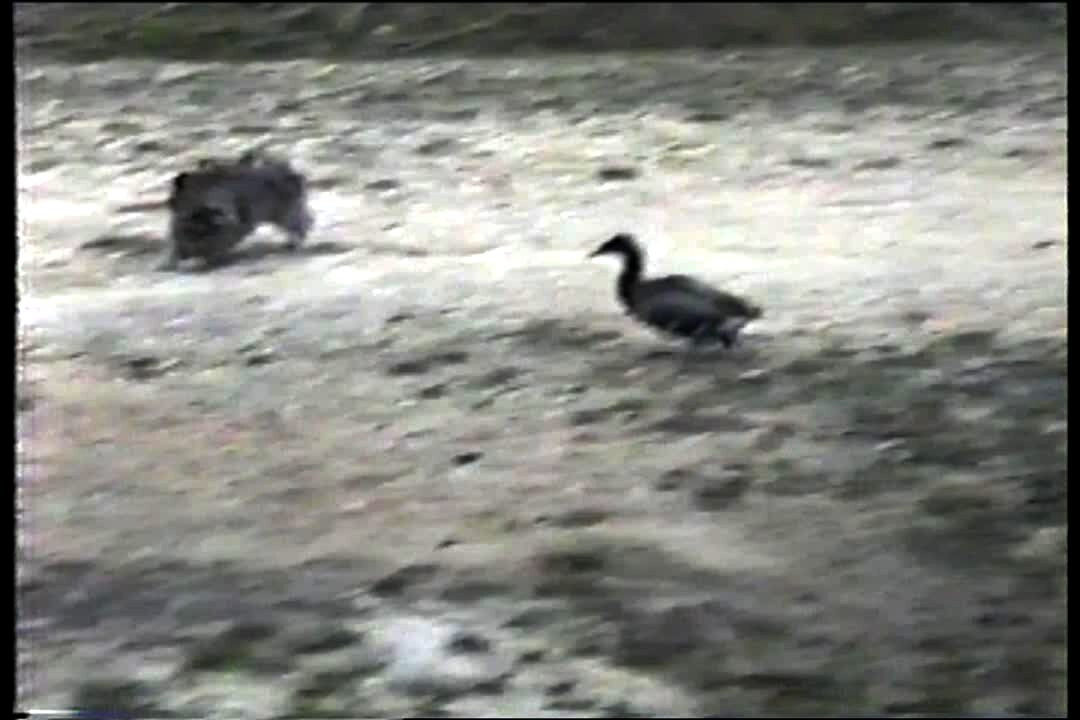 Duck bites dog's tail - and gets dragged when dog runs