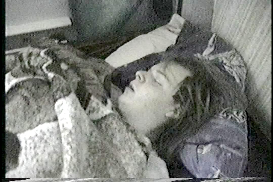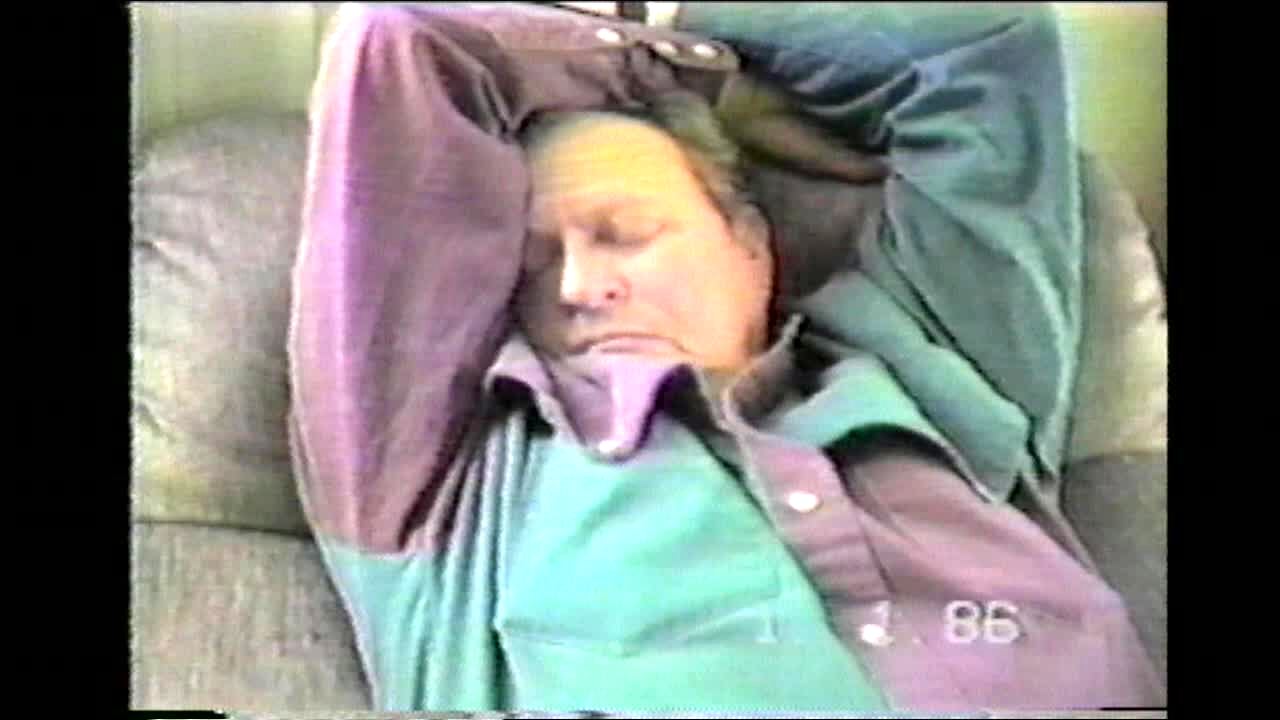 Sleep: Sleeping man snores, wakes up startled Date on screen 1986.