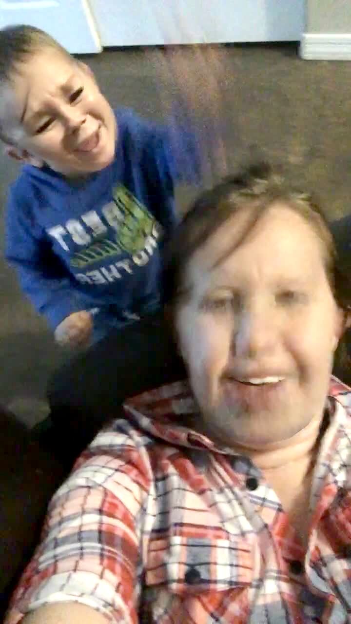 A young boy with a big bald spot on top of his head tells his mom that he shaved his hair, but then says that it was an accident because he broke his hair.