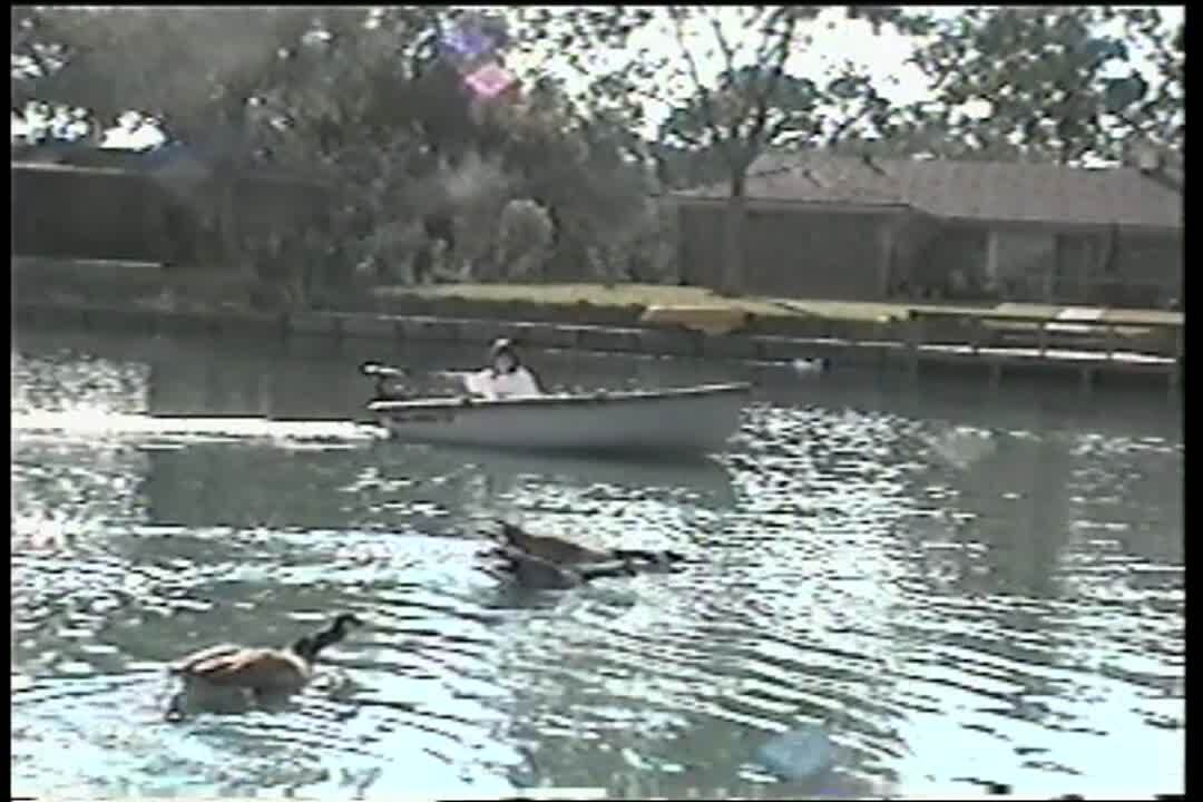 "Mild Goose Chase" A woman tries to shoo some geese out of her driveway but screams and runs back inside as they follow her. Security footage.