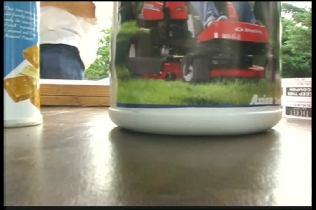 Man backing a lawn mower off of a trailer decline falls backwards when the ramp buckles. Doesn't have more heads than orig. submission - has titles instead. Short tail - camera goes off man after fall