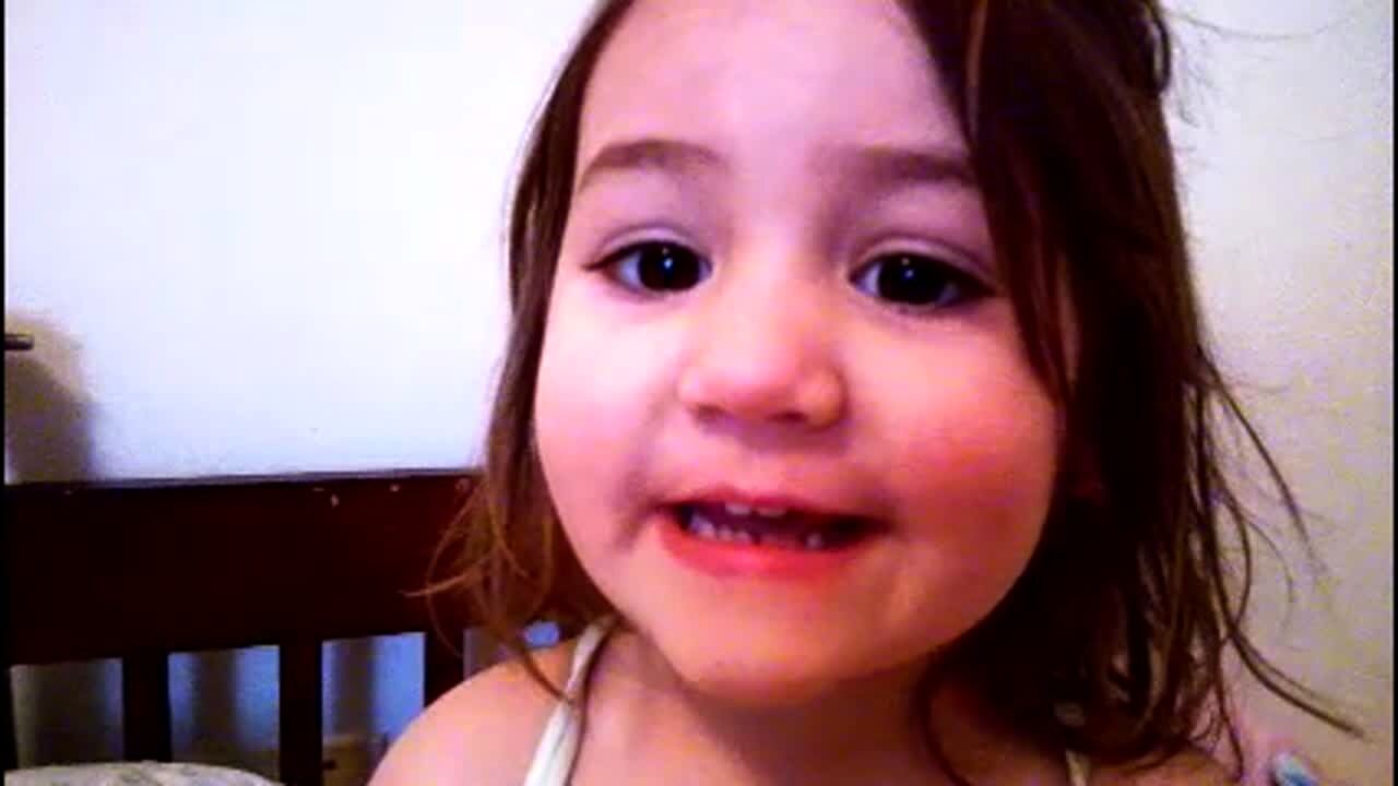 A tot girl sings "I wish you a merry Christmas," but stops mid-song and says "I don't want to do this."