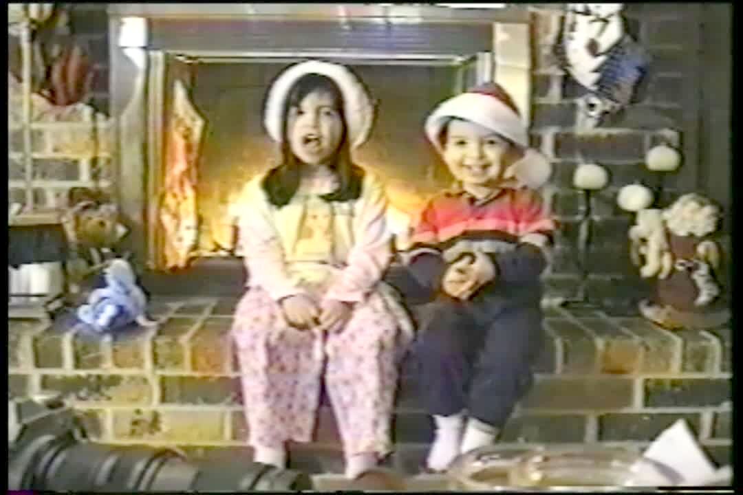 Tot boy and girl sing "Jingle Bells," at the end her brother says he farted. Sibling.