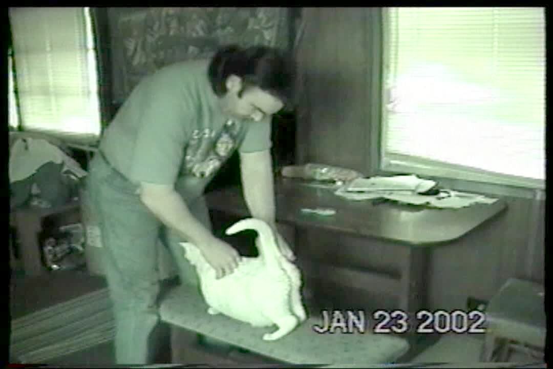 Cat Dancer. Man has cat crawl onto his head, they dance.