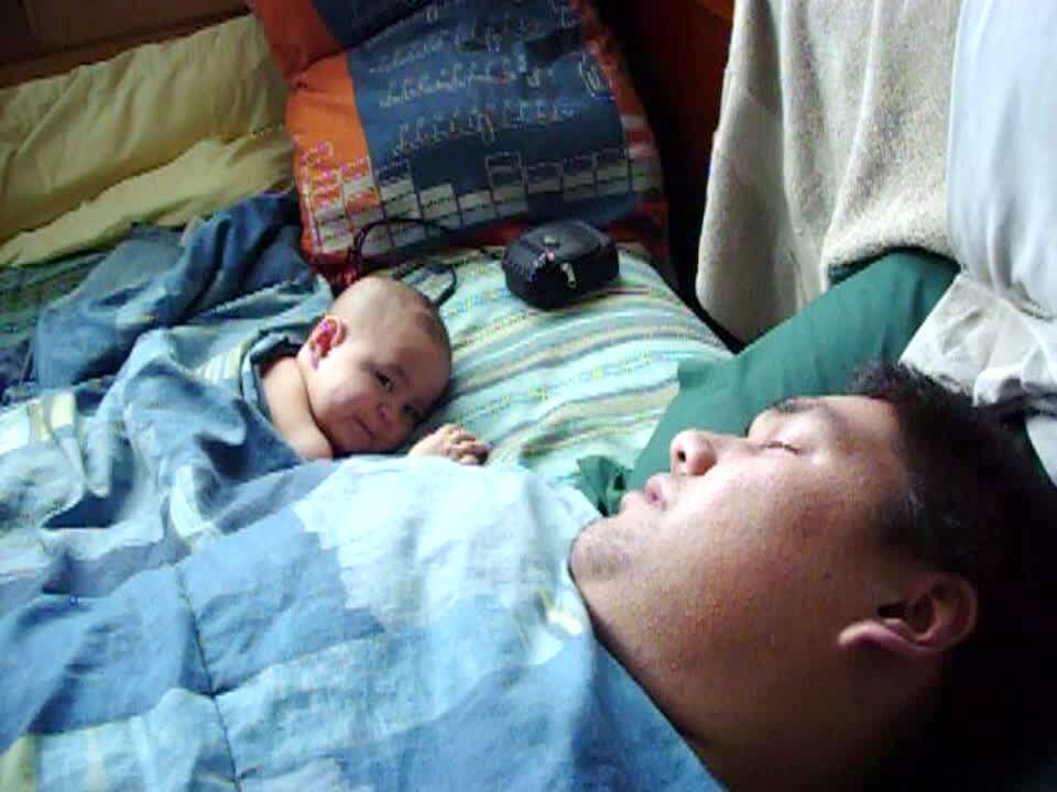 Sleep: Sleeping man snores, wakes up startled Date on screen 1986.