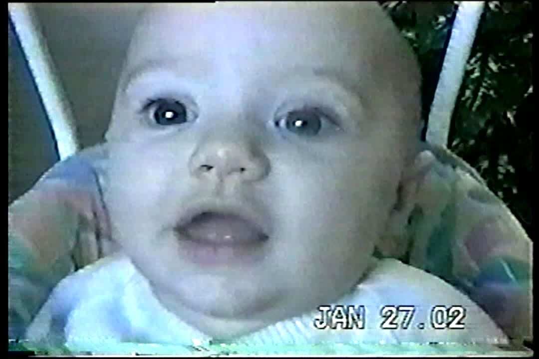 P.O.V. baby in rocking chair, mother looking at baby, baby gets covered with kisses